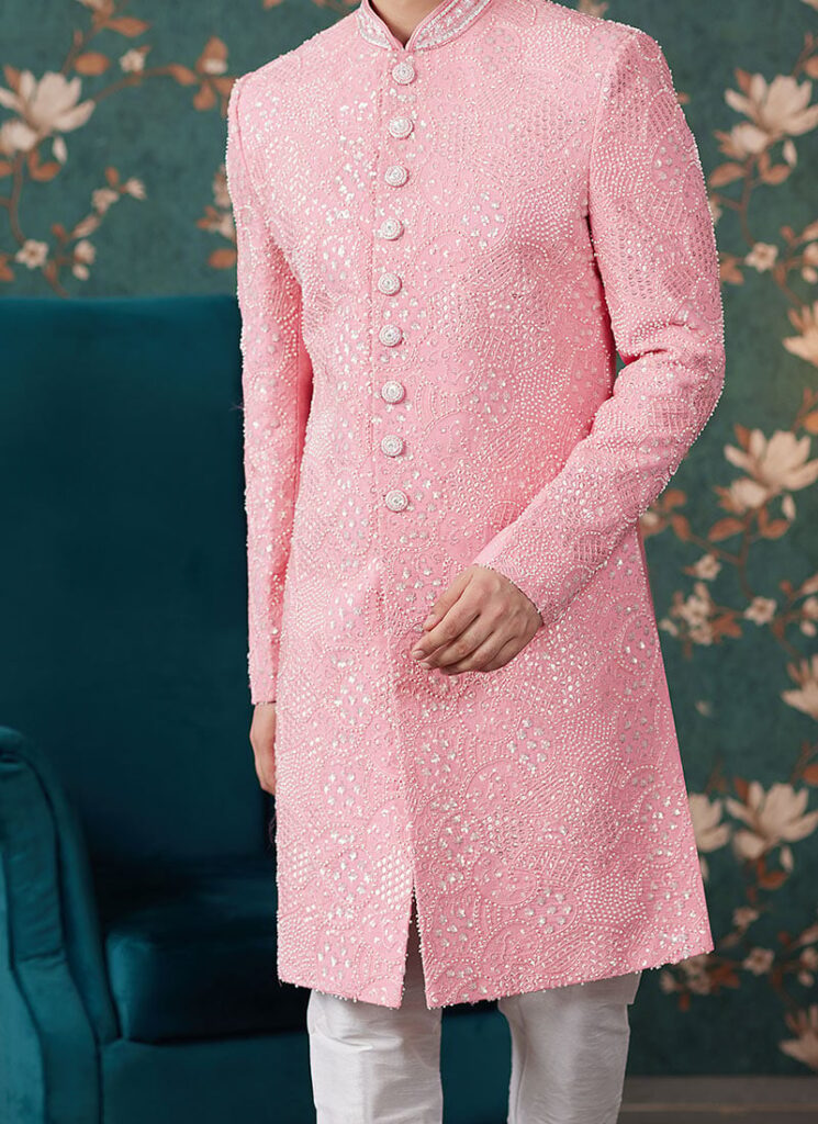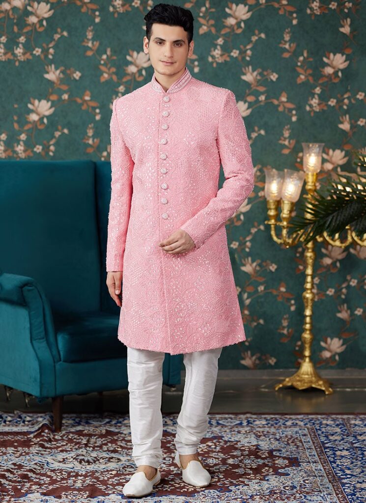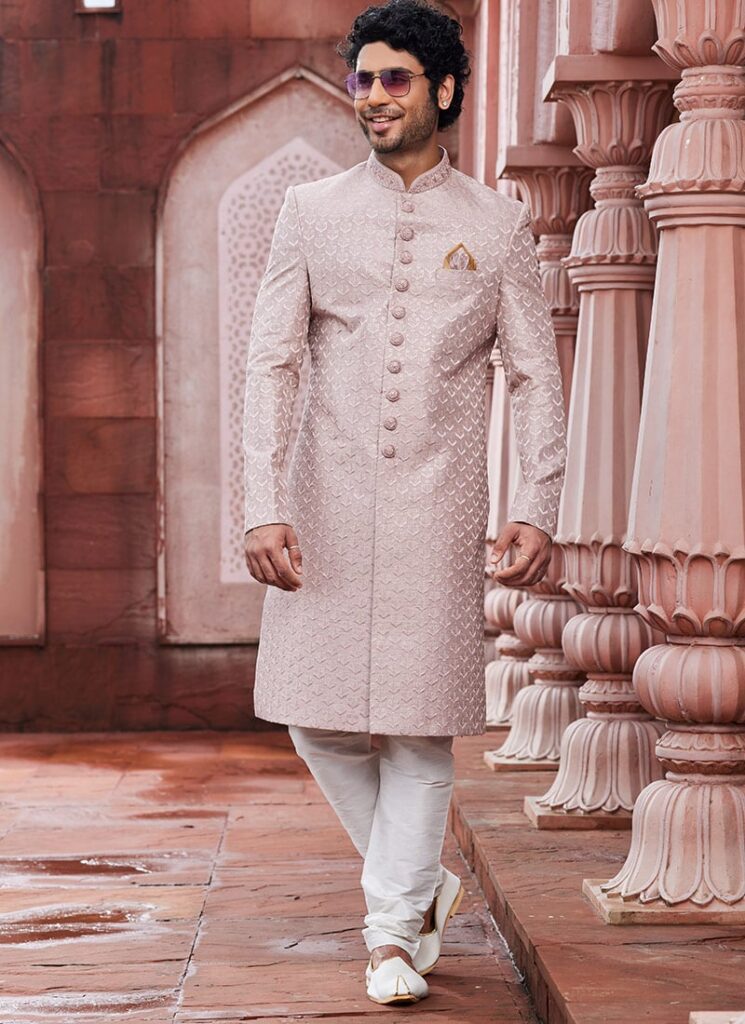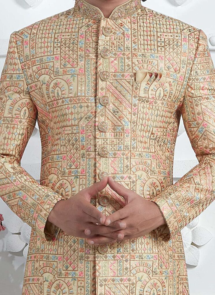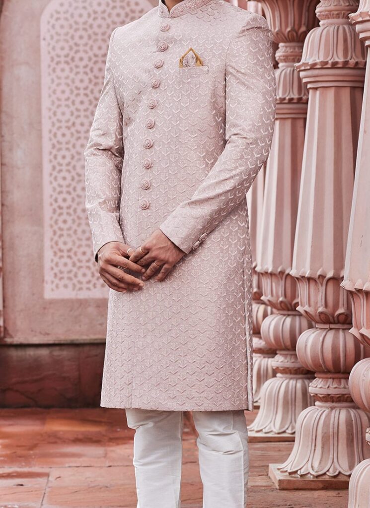 Explore regal sherwani for men in India at Utsarah, perfect for weddings and festive occasions. Our collection includes classic and modern sherwani designs in premium fabrics such as silk, jacquard, brocade, velvet, and blends. Skilled artisans add intricate embroidery, zari work, and textured patterns for a refined, stylish look. Each sherwani offers a comfortable fit and a distinguished appearance. Ideal for weddings, receptions, festivals, and ceremonies, these sherwanis combine traditional craftsmanship with contemporary elegance. Shop Utsarah sherwanis to make a lasting impression at every celebration.