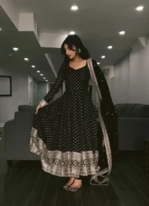 Product Name Black Faux Blooming Embroidered Anarkali Suit Suit