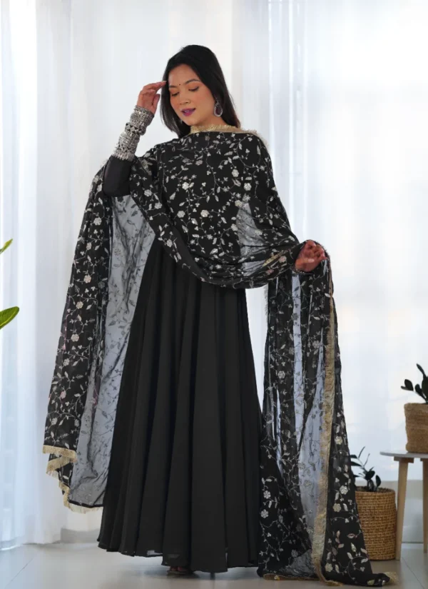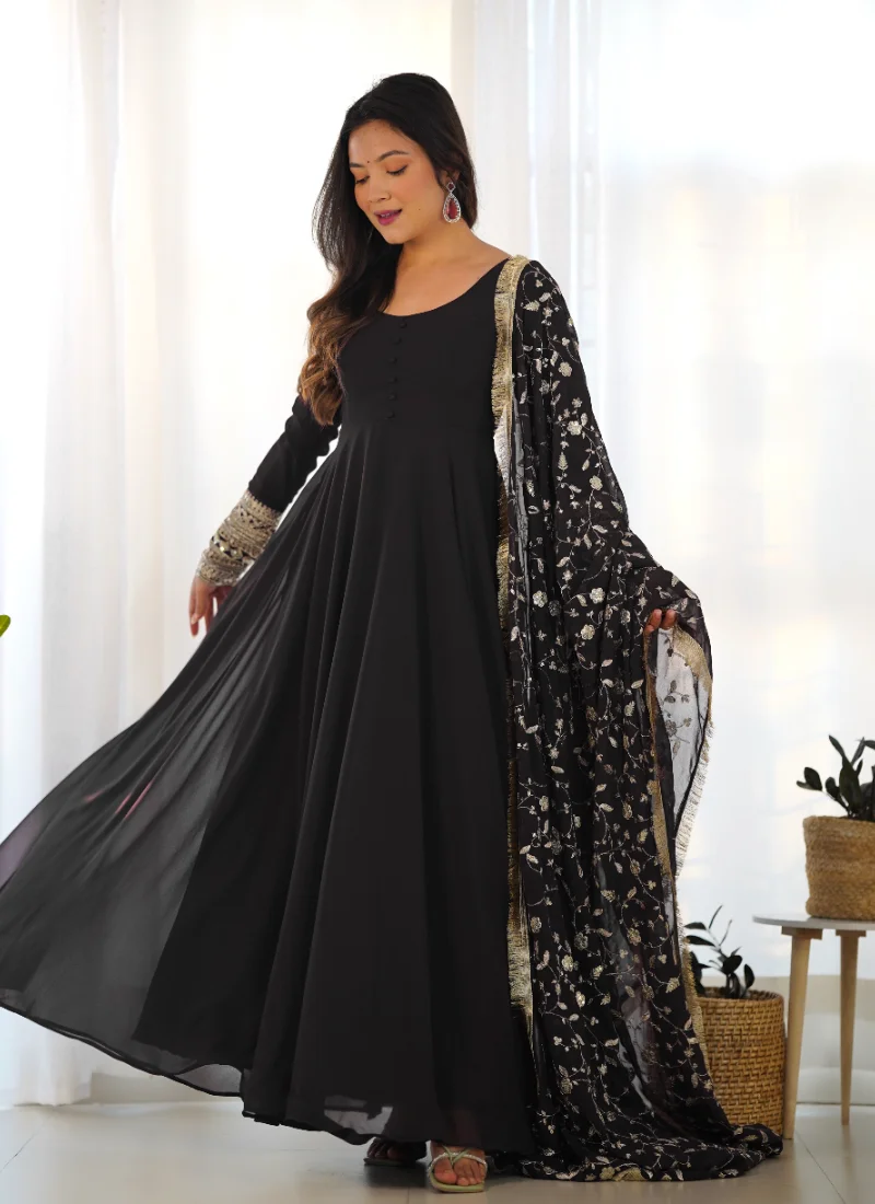 The Black Fox Georgette Gown Set is a versatile festive pick that pairs premium fabric with graceful movement and coordinated pieces.