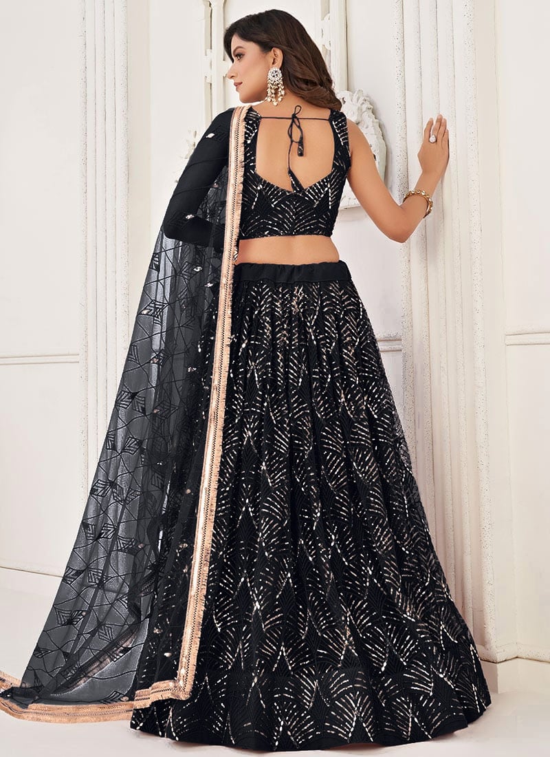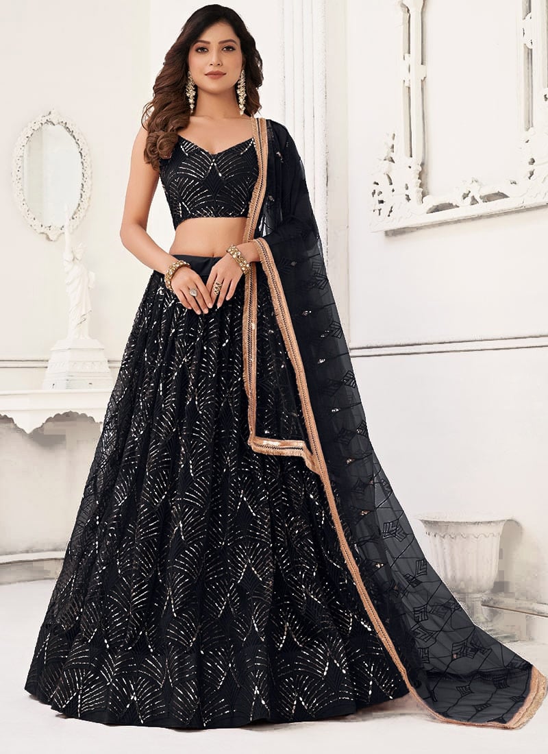 Black Net Umbrella Lehenga with Sequins & Mirror Embroidery ? Festive & Wedding Wear