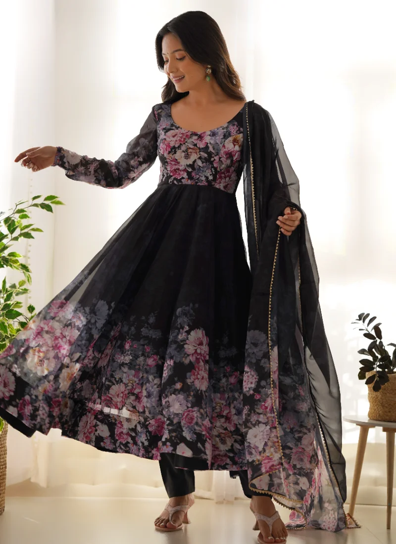 Product NameBlack Organza Silk Print Lace Work Anarkali Set