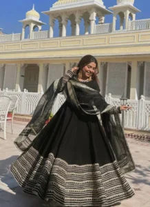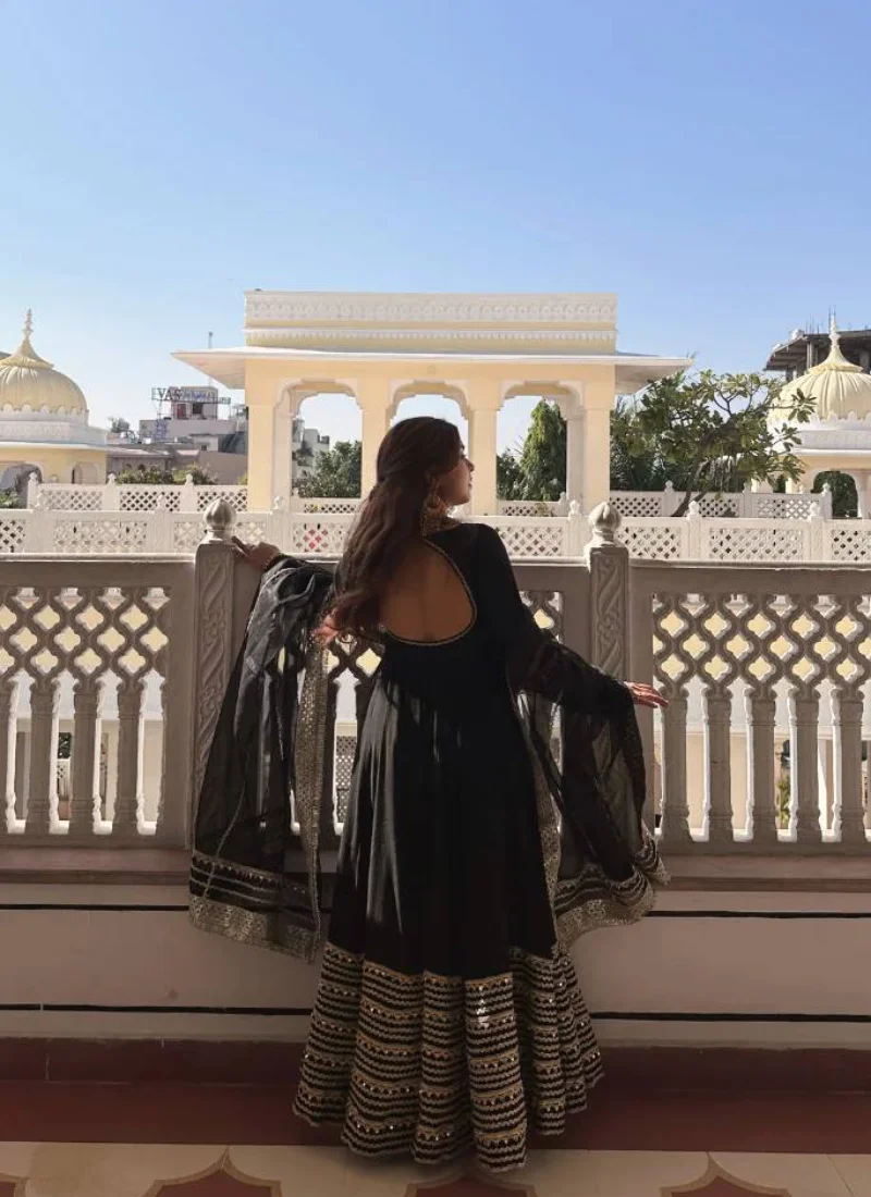 Perfect for festive gatherings, family functions, wedding events, and celebration wear, this Black Rayon Embroidered Salwar Suit is designed to deliver standout style with versatile elegance.