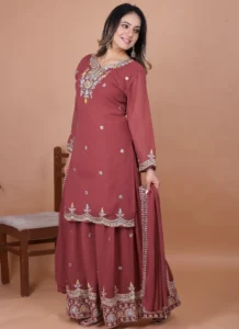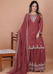 Perfect for festive gatherings, family functions, wedding events, and celebration wear, this Burgundy Georgette Embroidered Salwar Suit is designed to deliver standout style with versatile elegance.