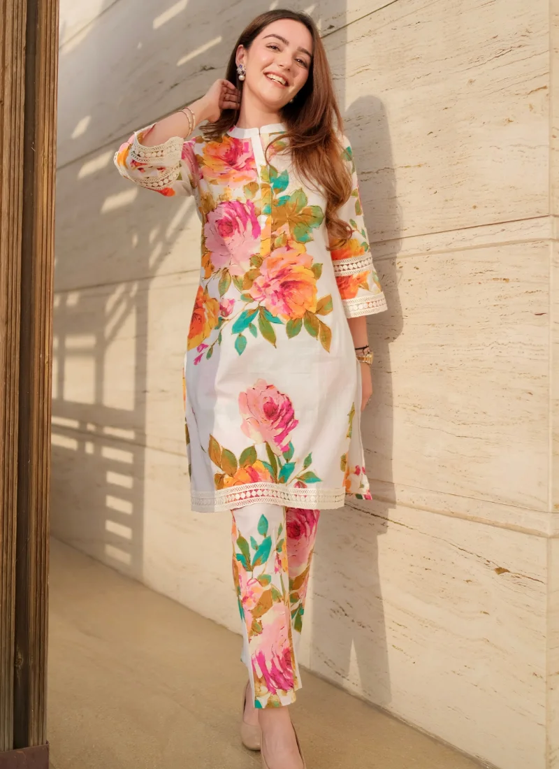 Key Features: Pure cambric cotton fabric, attractive digital print design, fully stitched top and straight pant, breathable texture, elastic waistband for comfort, and lightweight construction for easy movement. Ideal for daily wear and semi-formal occasions.