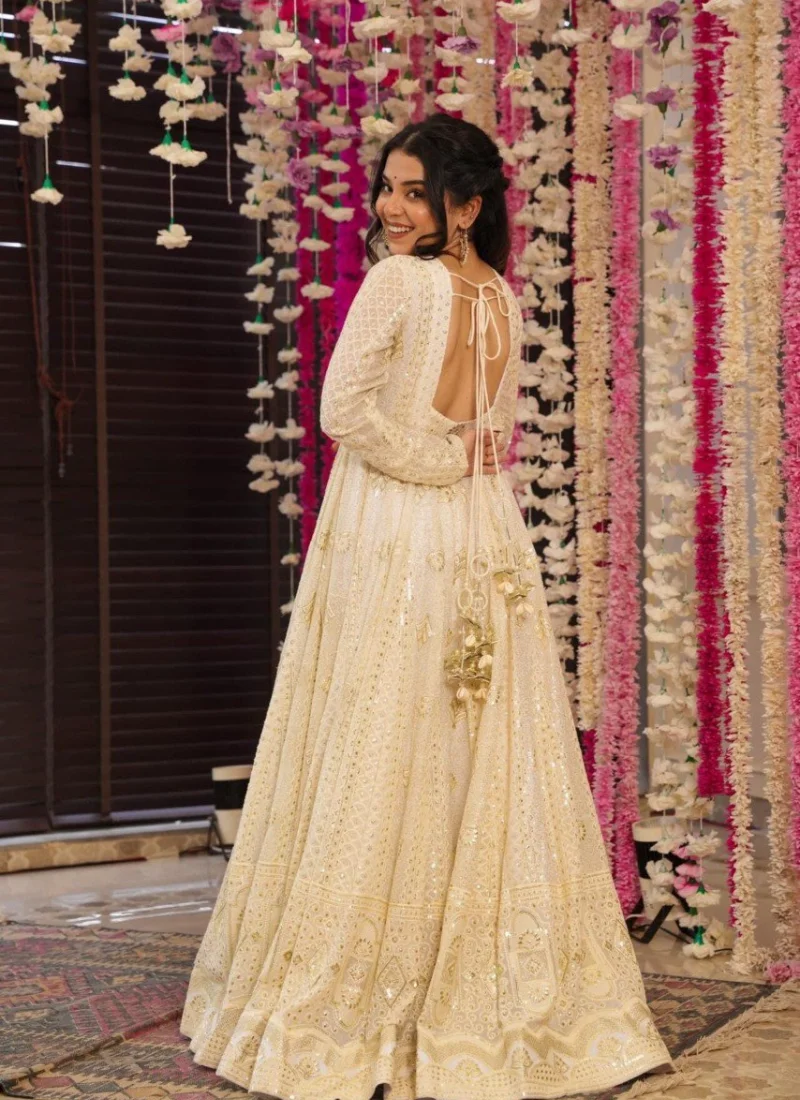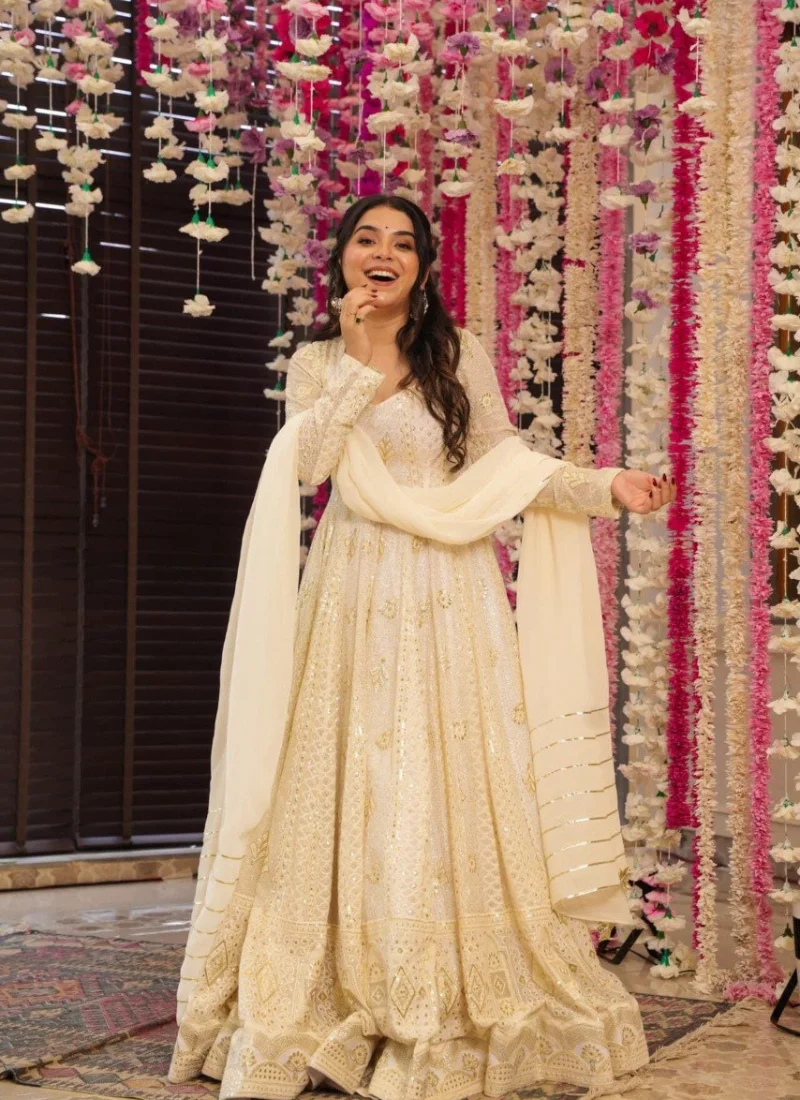 Whether styled for festive outings, party wear, or traditional celebrations, this Cream Georgette Embroidered Anarkali Suit offers a premium ethnic look that feels timeless and easy to accessorize.
