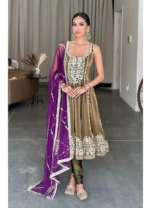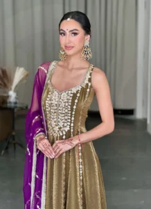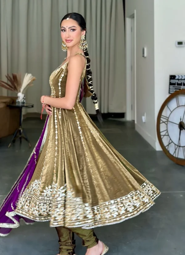 Product NameGold Fendy Satin Mirror Work Gown Set