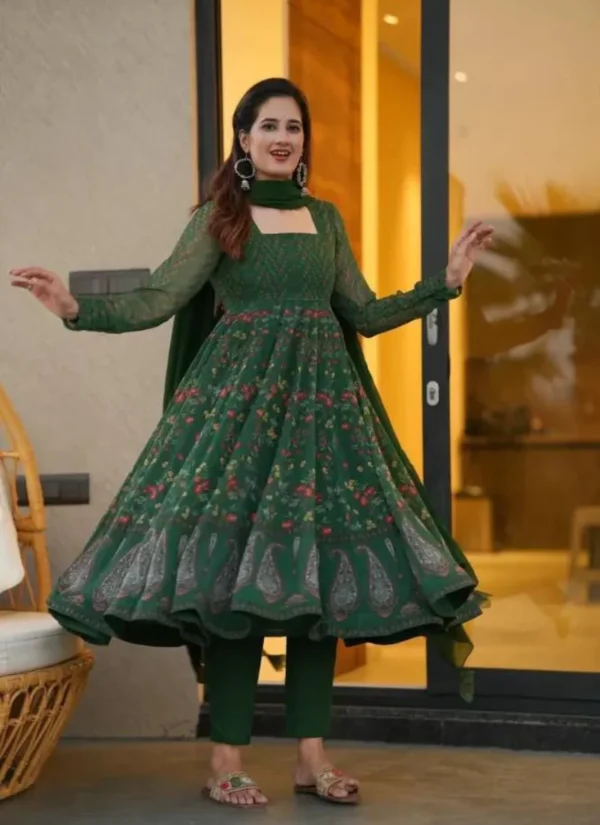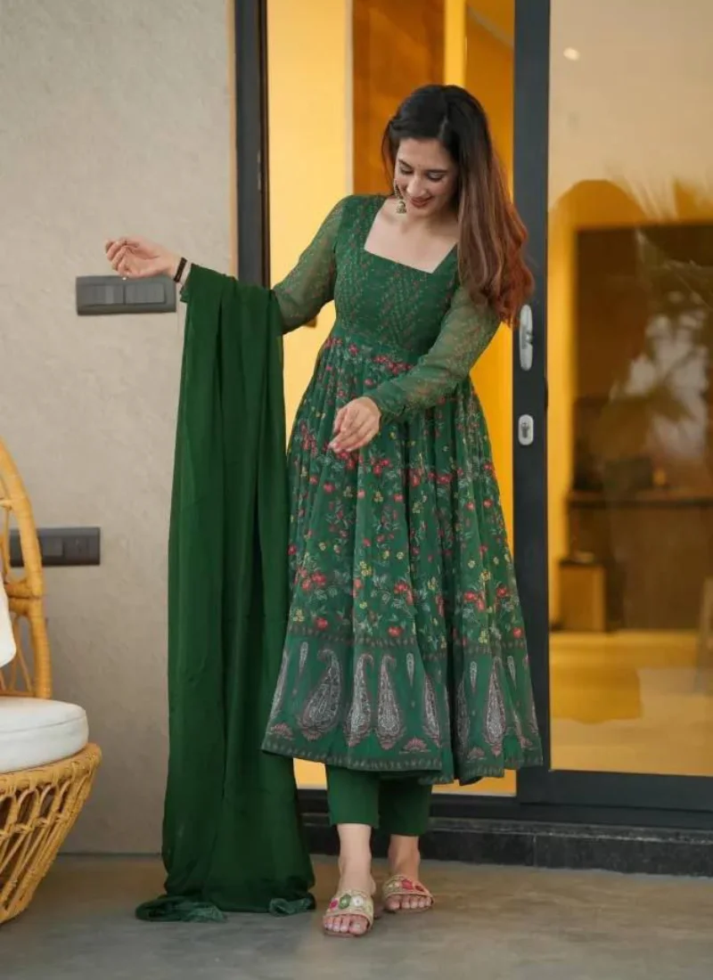 Whether styled for festive outings, party wear, or traditional celebrations, this Green Georgette Embroidered Anarkali Suit offers a premium ethnic look that feels timeless and easy to accessorize.