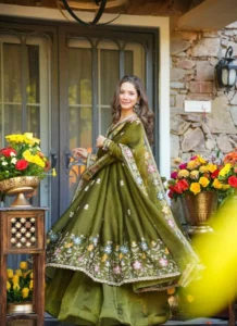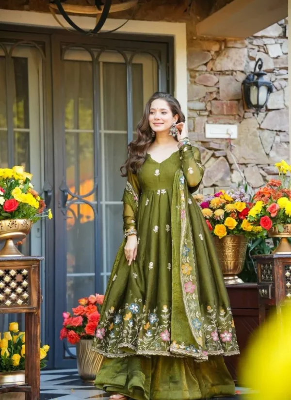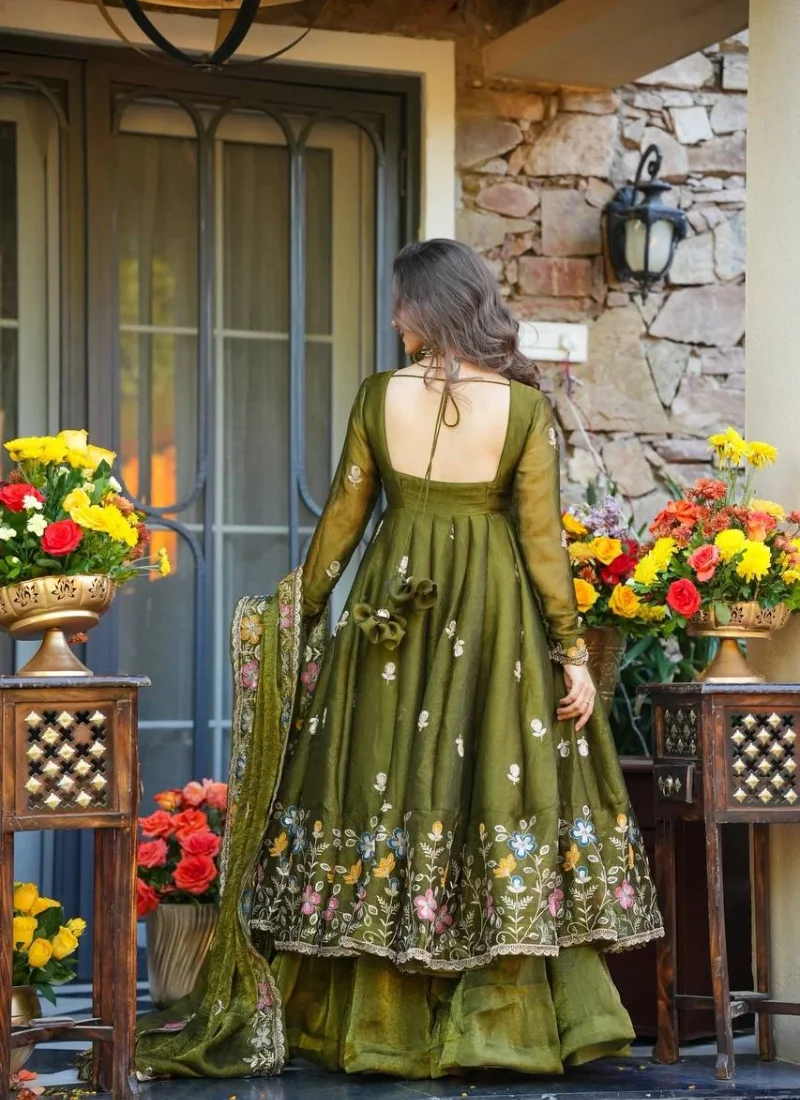Perfect for festive gatherings, family functions, wedding events, and celebration wear, this Green Silk Embroidered Anarkali Suit is designed to deliver standout style with versatile elegance.