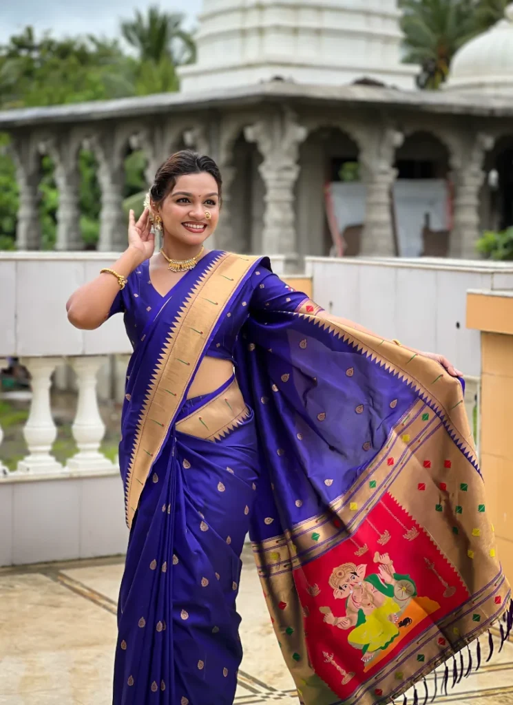 green paithani silk saree is crafted in Soft Paithani Silk Saree with Zari and styled with elegant Meenakari weaving details for a rich festive look. This graceful saree is designed to bring timeless ethnic charm to weddings, festive celebrations, and traditional occasions.