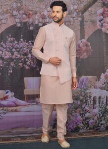 Elevate your festive and party wardrobe with the Light Peach Banarasi Art Silk Bandi Set, a perfect blend of traditional elegance and contemporary style. Crafted from premium Banarasi art silk, this ensemble exudes sophistication with its rich texture, subtle sheen, and intricate detailing. The bandi jacket is designed with meticulous Banarasi motifs, giving it a regal and festive appeal. Its tailored fit and structured silhouette make it an ideal choice for weddings, engagement ceremonies, Diwali, and other celebratory occasions. The light peach hue adds a soft, elegant touch, making it suitable for daytime and evening events. Paired with a matching bottom and dupatta, the set creates a harmonious and polished look. The lightweight and breathable art silk fabric ensures comfort without compromising style, allowing you to enjoy long hours of festivities effortlessly. Perfect for festive gatherings, family celebrations, or party wear, the Light Peach Banarasi Art Silk Bandi Set combines traditional craftsmanship with modern elegance. Pair it with statement accessories and stylish footwear to complete your festive ensemble.