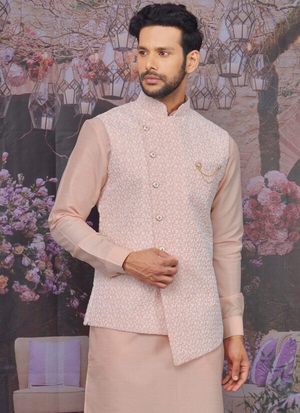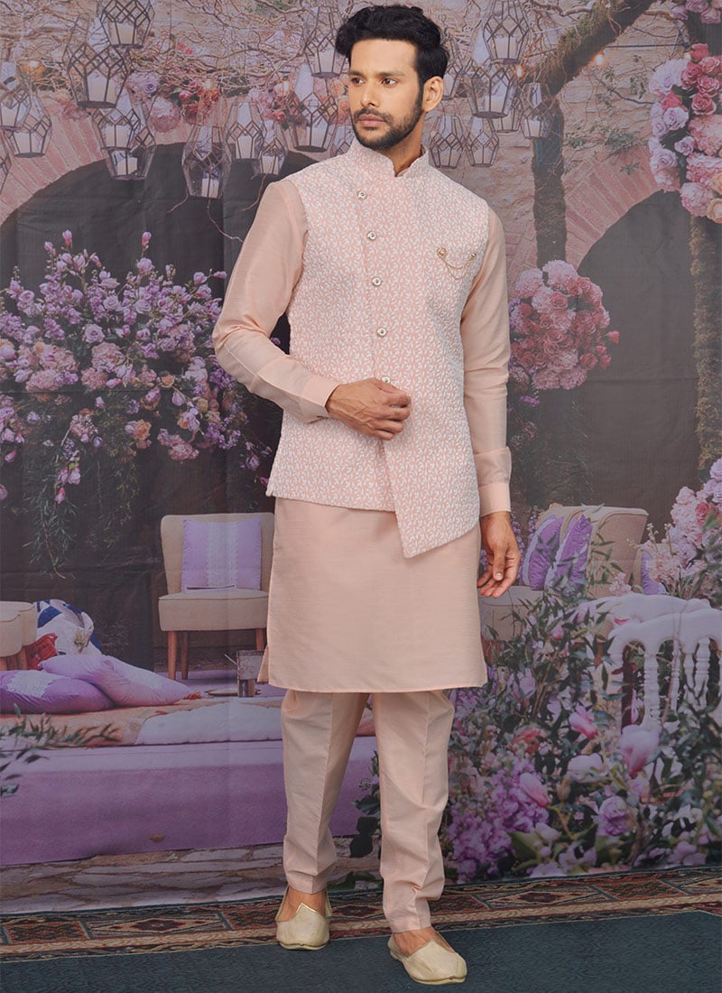 Light Peach Banarasi Art Silk Bandi Set – Party & Festive Wear