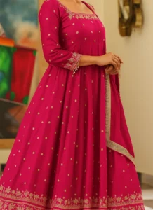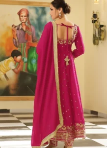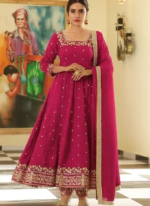 Perfect for festive gatherings, family functions, wedding events, and celebration wear, this Magenta Chinon Embroidered Anarkali Suit is designed to deliver standout style with versatile elegance.