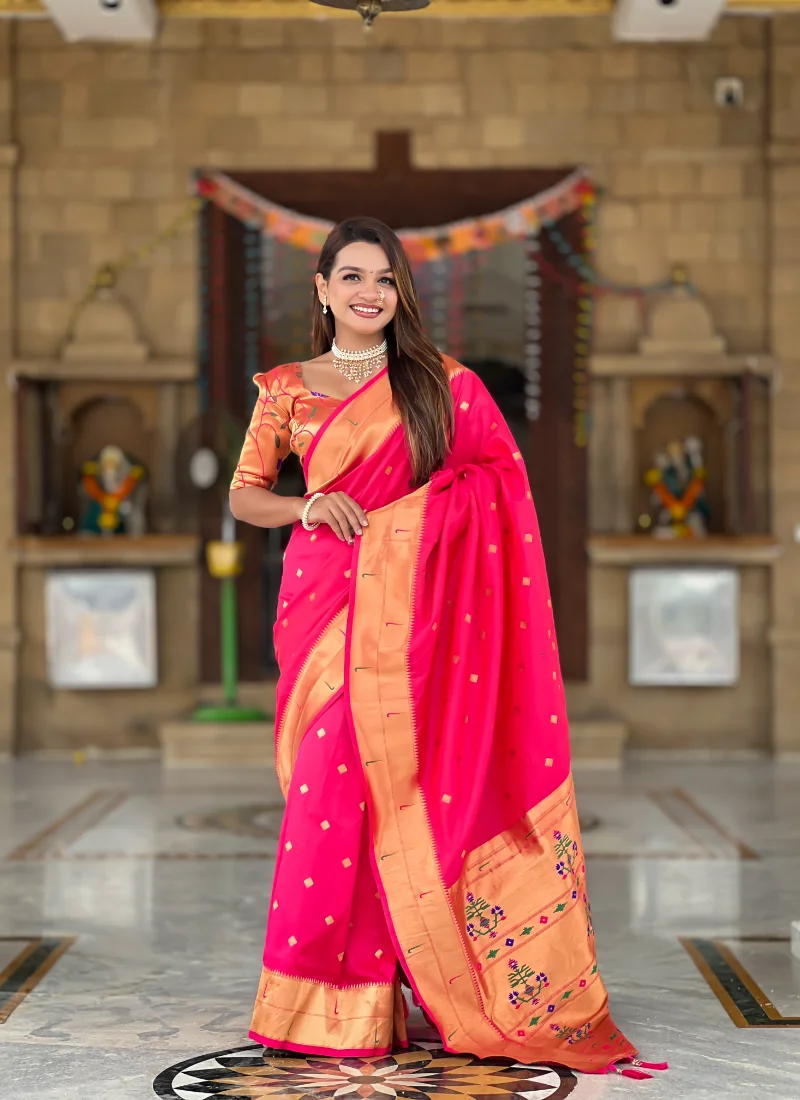 Magenta Soft Paithani Silk Saree with Zari