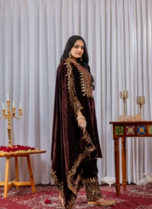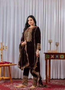 Product NameMaroon Viscose Velvet with 5 MM Embroidery Sequen Suit Set