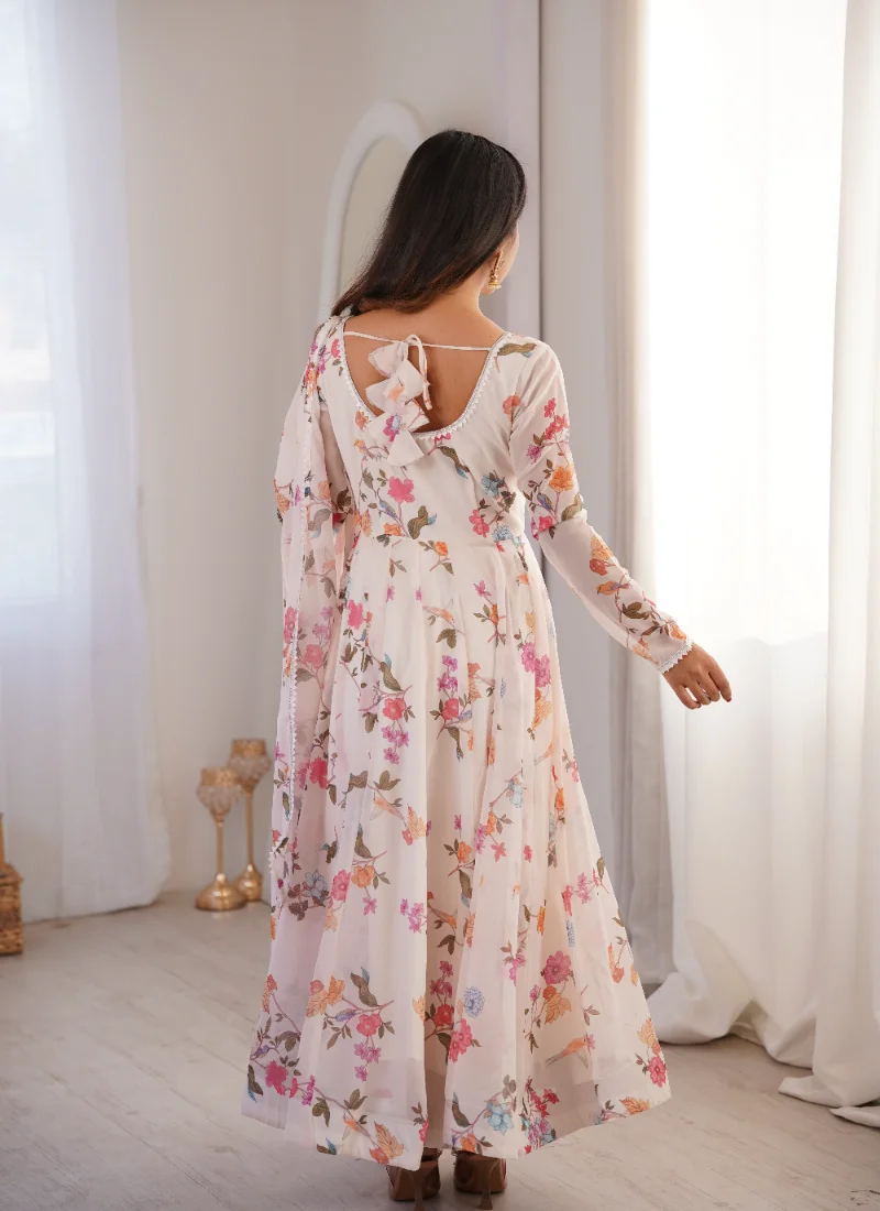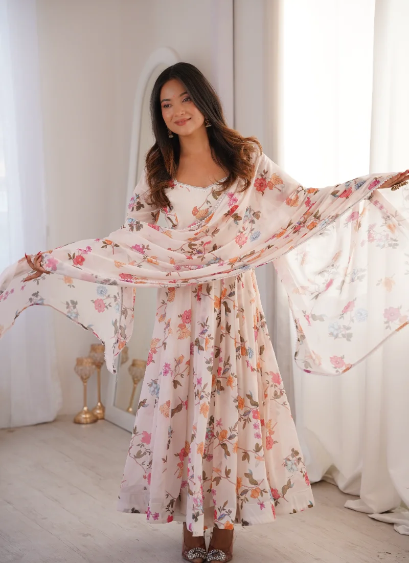 The Multi Color Printed Georgette Suit is a versatile festive pick that pairs premium fabric with graceful movement and coordinated pieces.