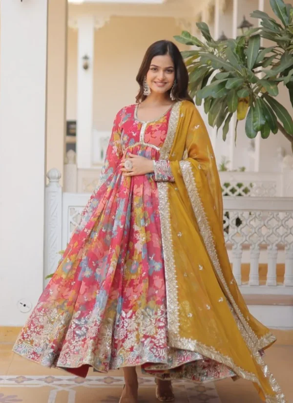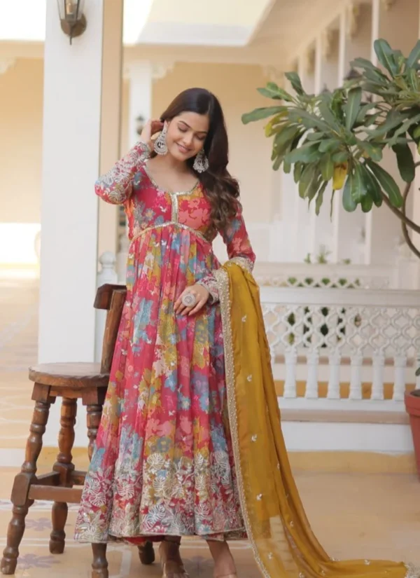 Whether styled for festive outings, party wear, or traditional celebrations, this Multi Georgette Embroidered Anarkali Suit offers a premium ethnic look that feels timeless and easy to accessorize.
