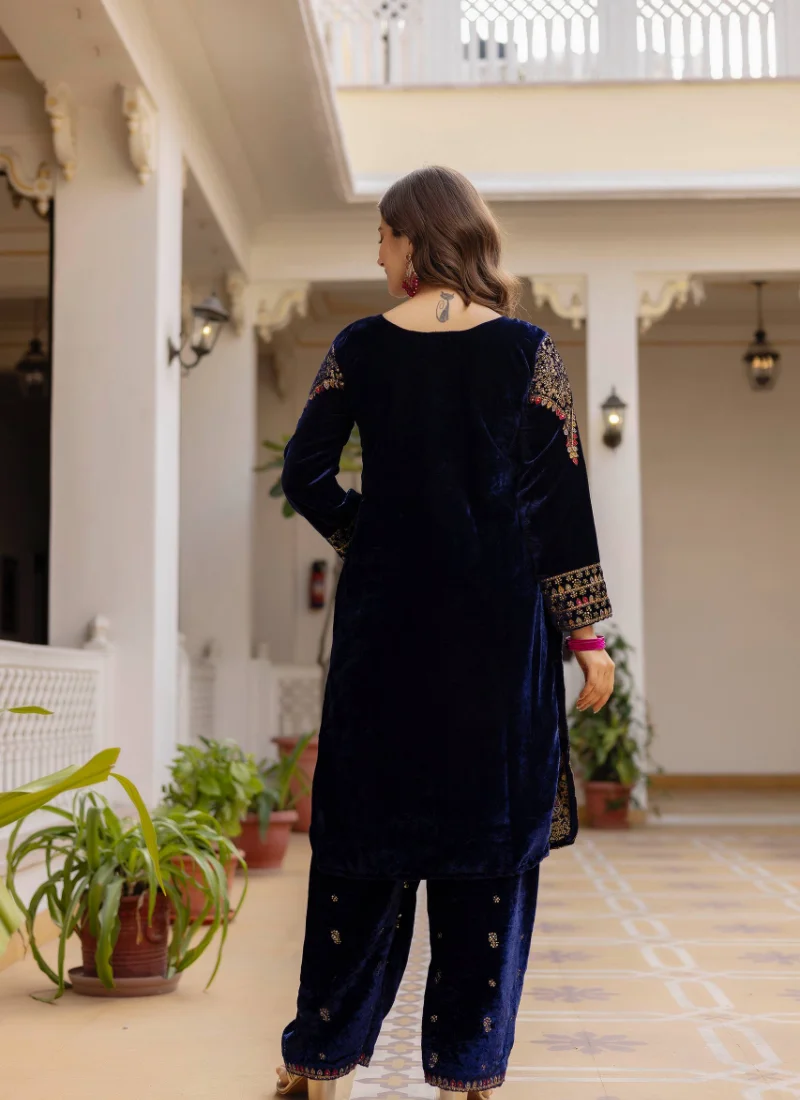 Navy Blue 9000 Velvet Embroidered Kurta Set