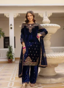 Product NameNavy Blue 9000 Velvet Embroidered Kurta Set