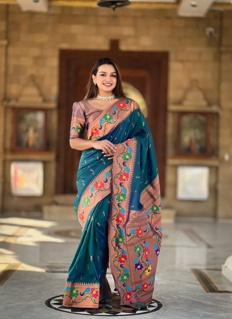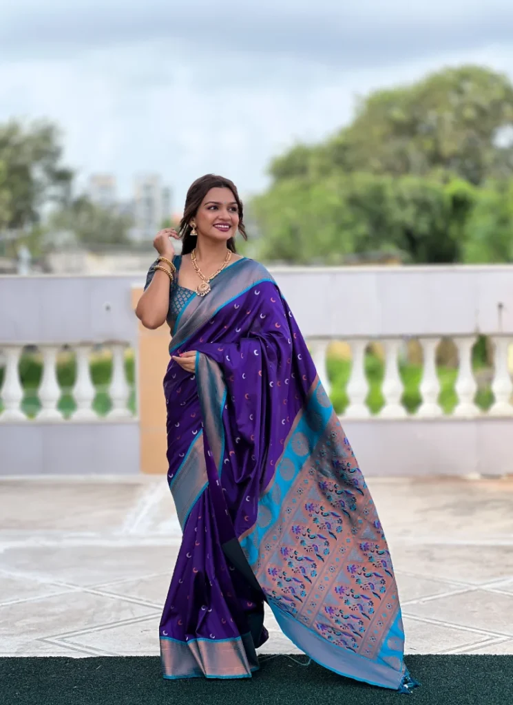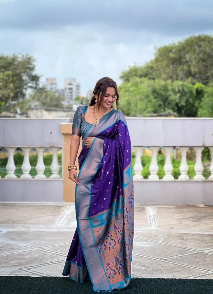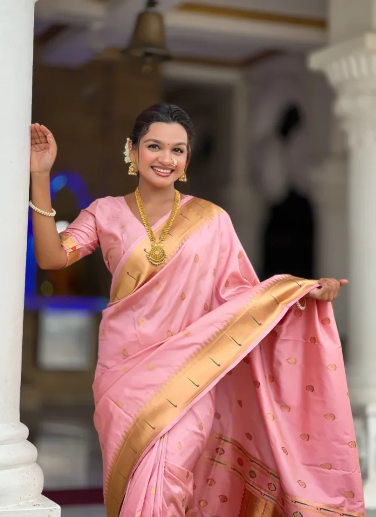 Blouse FabricSoft Paithani Silk Saree with Zari