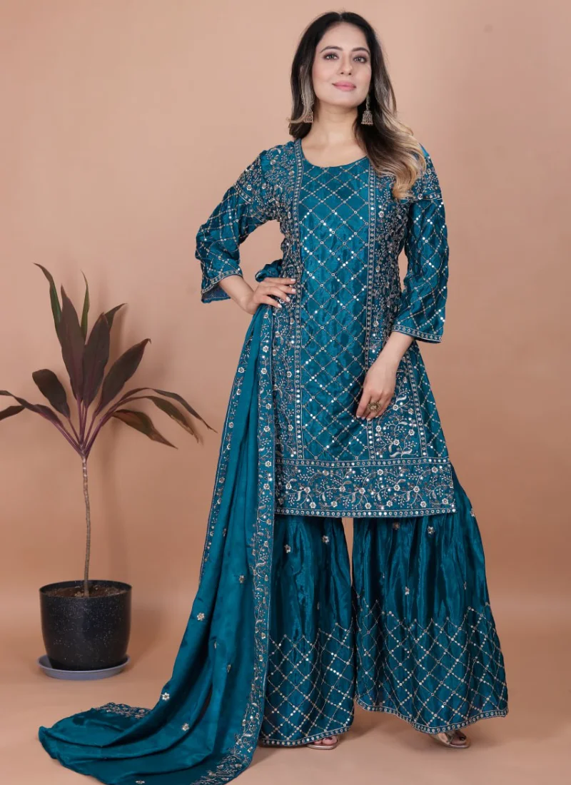 With its flattering drape and refined finish, the kurta highlights embroidery work and a graceful neckline. The stitched bottom and matching dupatta make this set ideal for effortless dressing across festive and semi-formal moments.