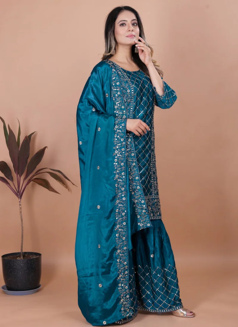 This Peach Silk Embroidered Salwar Suit is a flattering wardrobe essential that blends premium fabric, polished detailing, and easy wearability.