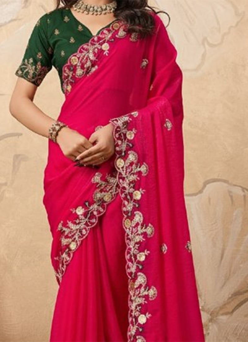 Enhanced with intricate sequin embroidery, the pink chiffon saree adds subtle glamour while maintaining a refined and sophisticated look. The airy chiffon fabric ensures comfort and effortless movement, while the shimmering embellishments elevate its festive appeal. This Pink Chiffon Sequin Embroidered Saree perfectly blends timeless elegance with contemporary style.