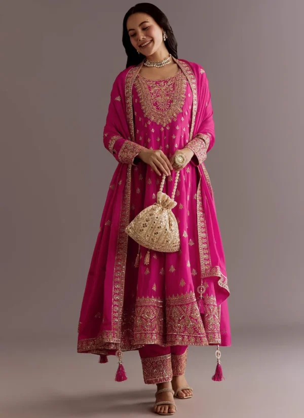 Its Chinon Silk with Embroidery Sequence Work base is styled with Chinon Silk with Embroidery Sequence Work and Chinon Silk with Embroidery Sequence Work dupatta, creating a complete ethnic ensemble. Refined ethnic detailing. Available in M (38), L (40), XL (42), XXL (44).