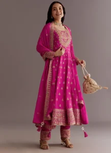 Created for celebrations and special gatherings, this Pink Chinon Silk Palazzo Set offers a balanced mix of comfort, flow, and detail.