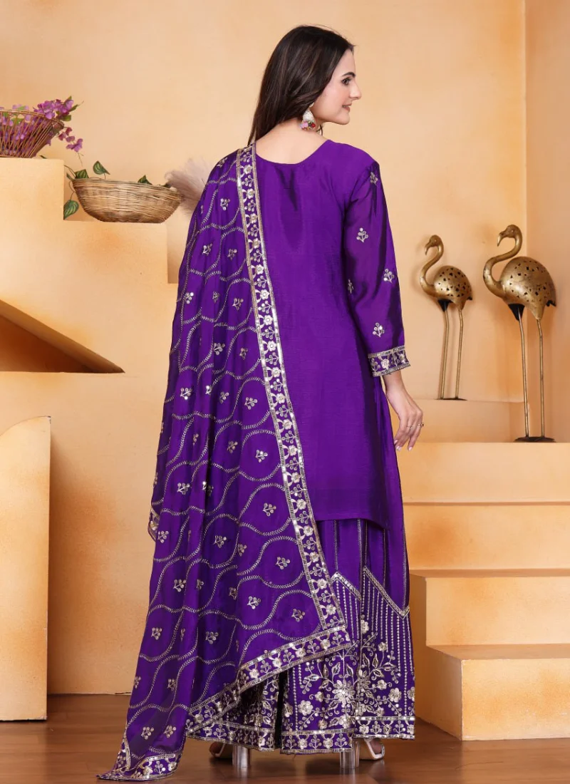Whether styled for festive outings, party wear, or traditional celebrations, this Purple Georgette Embroidered Salwar Suit offers a premium ethnic look that feels timeless and easy to accessorize.