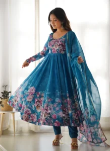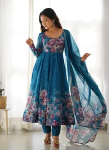 This Rama Organza Silk Anarkali Set brings together refined fabric, thoughtful finishing, and an easy ready-to-wear silhouette.