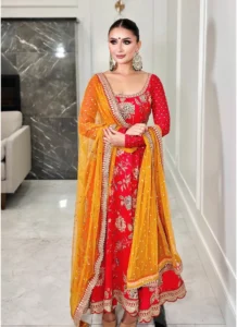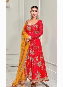 Product Highlights: Designed with heavy embroidery sequence work with diamond hand work, giving the top a, embroidery sequence work with lace border, creating a beautifully detailed, the Red Faux Georgette, Palazzo Set combines a length of 51-52 inches, offering a flattering, full-length fit., coordinated styling and practical ready-to-wear styling for standout dressing.