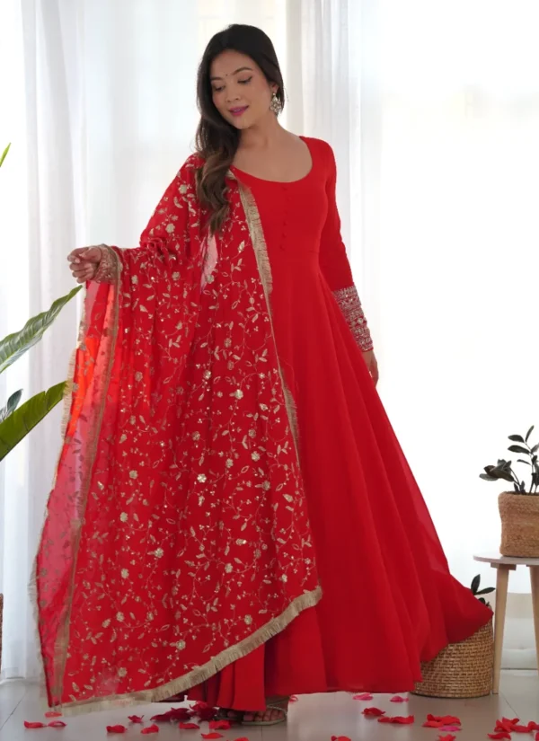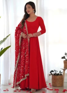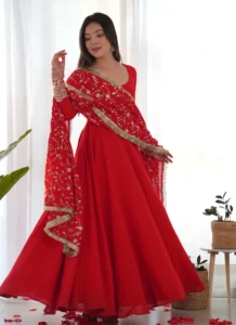 Product Highlights: The Red Fox Georgette Potli Gown brings together refined ethnic styling, flattering structure, and a complete set for festive events and celebrations.