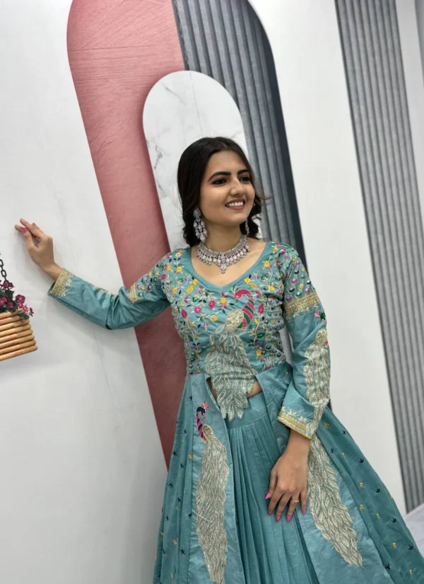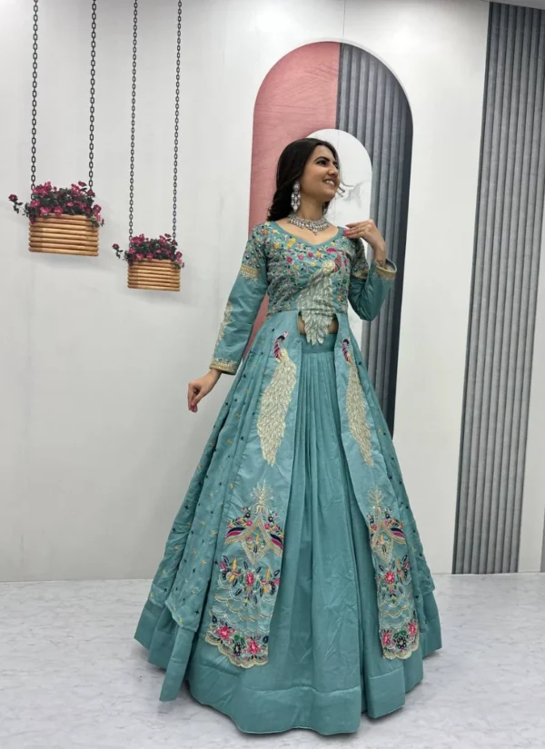 This Sky Blue Silk Embroidered Salwar Suit is a flattering wardrobe essential that blends premium fabric, polished detailing, and easy wearability.