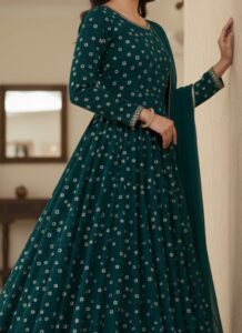 The Teal Faux Georgette Anarkali Suit with Embroidery & Sequins is a graceful ethnic ensemble crafted for luxurious wedding celebrations and elegant party wear. Designed in premium faux georgette fabric, this Anarkali suit offers a fluid drape with a regal silhouette that enhances festive sophistication. Adorned with intricate embroidery and shimmering sequins, the teal Anarkali suit reflects refined craftsmanship and timeless appeal. The flared Anarkali pattern creates a flattering flow, while the lightweight faux georgette fabric ensures comfort for long celebrations. This Teal Faux Georgette Anarkali Suit with Embroidery & Sequins perfectly balances traditional elegance with contemporary charm. Product Features & Specifications: • Fabric: Premium Faux Georgette Anarkali Suit • Work: Embroidery with Sequins Detailing • Style: Full-Length Flared Anarkali Silhouette • Occasion: Wedding Wear, Party Wear & Festive Events • Soft Fabric with Elegant Fall and Comfortable Fit