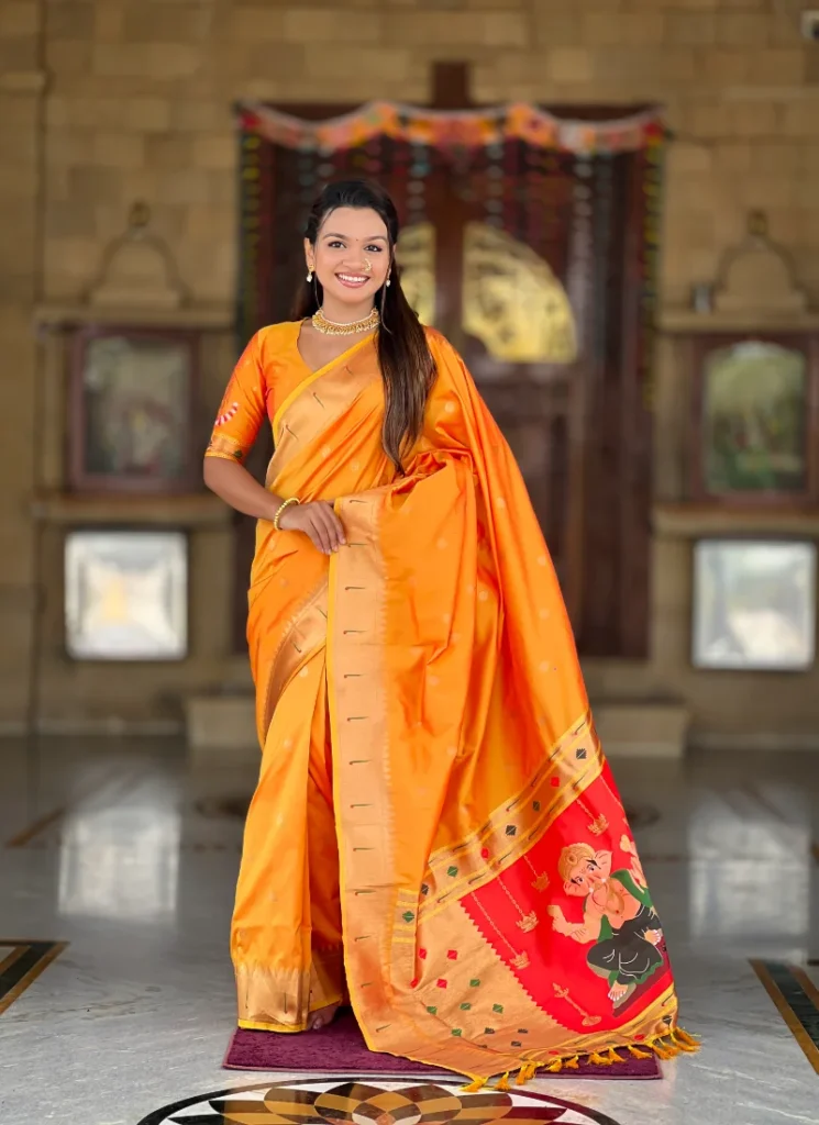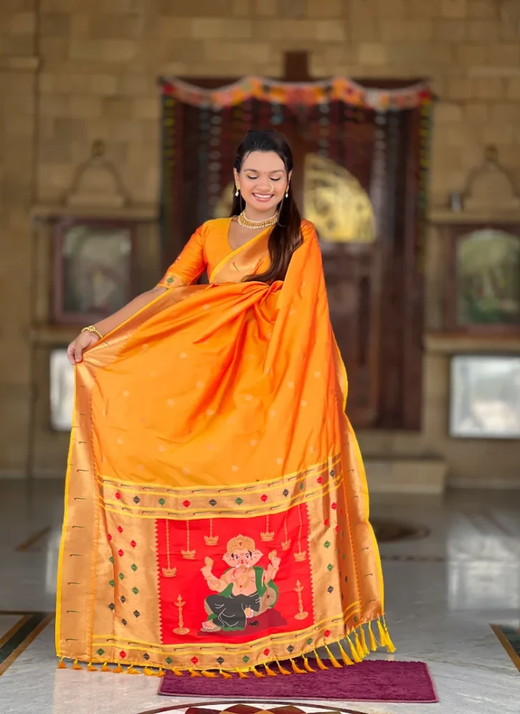 Blouse FabricSoft Paithani Silk Saree with Zari