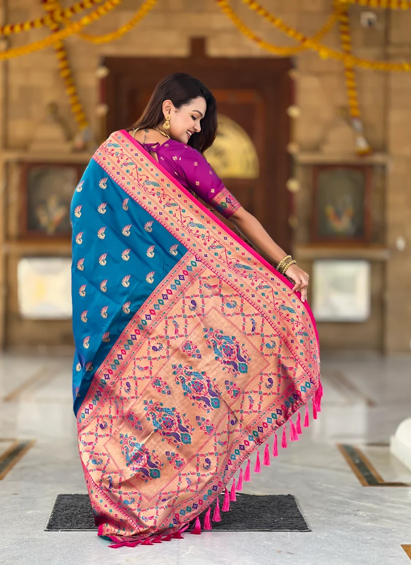 Turquoise Soft Pethani Silk Saree with Zari Woven Blouse
