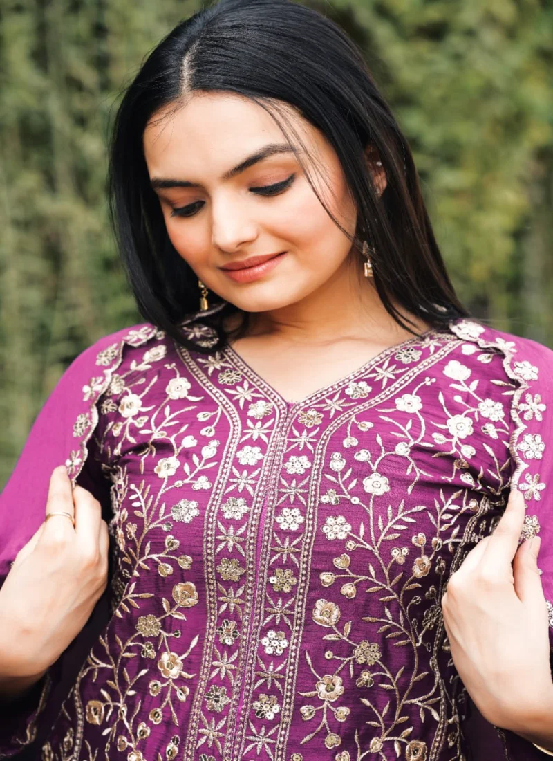 Whether styled for festive outings, party wear, or traditional celebrations, this Wine Silk Embroidered Salwar Suit offers a premium ethnic look that feels timeless and easy to accessorize.