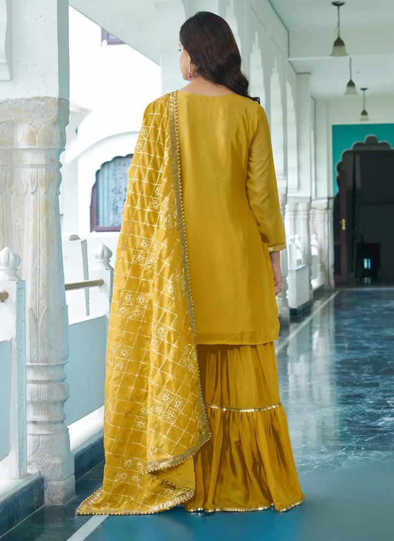 Yellow Heavy Chinnon Silk Gota Patti Sharara Suit
