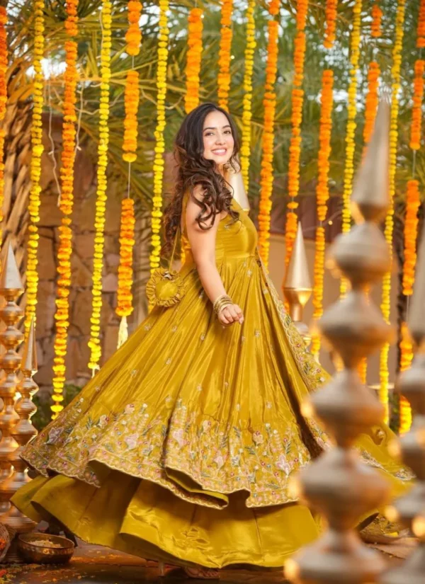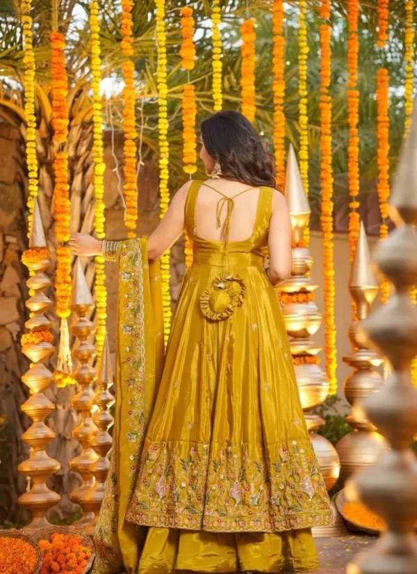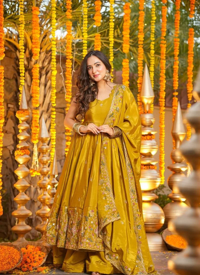 Whether styled for festive outings, party wear, or traditional celebrations, this Yellow Silk Embroidered Anarkali Suit offers a premium ethnic look that feels timeless and easy to accessorize.
