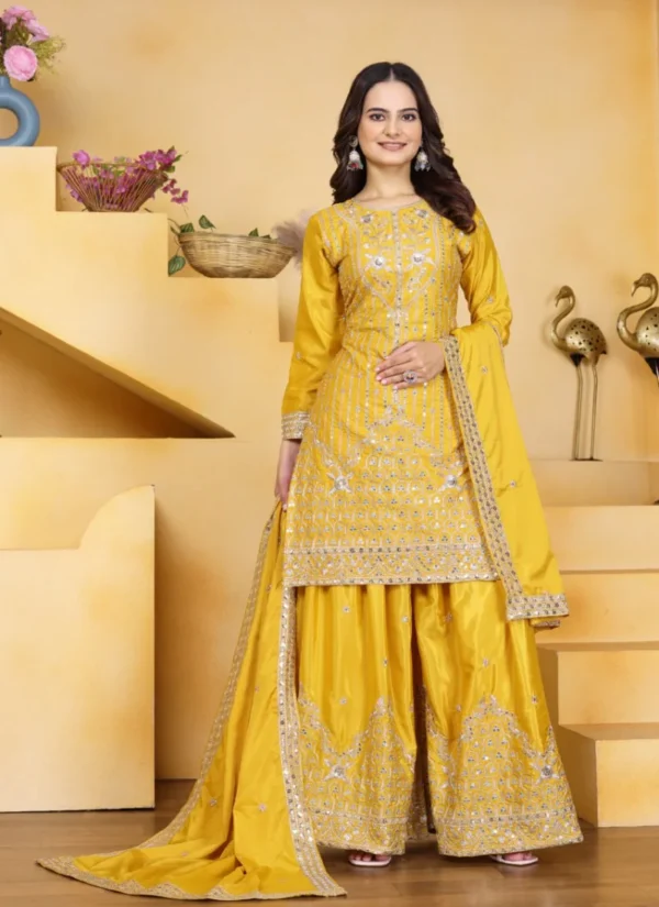 This Yellow Silk Embroidered Salwar Suit is a flattering wardrobe essential that blends premium fabric, polished detailing, and easy wearability.